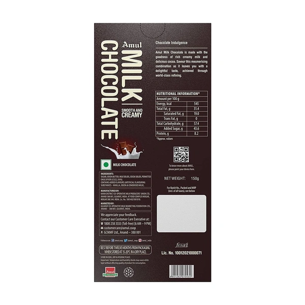 AMUL MILK CHOCOLATE CREAMY 150G FAMILY PACK