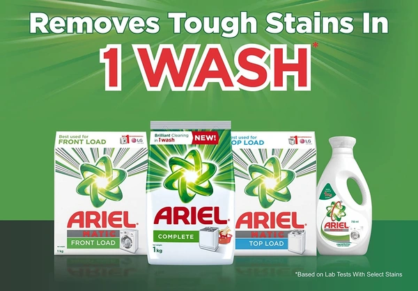 New & Improved Ariel Matic gives you tough stain removal for a bright clean in just 1 wash. Especially designed to be used in front loading machines, Ariel Matic Front Load offers brilliant stain removal for full loads. The oxi-stain fighters for an impeccable clean wash after wash. It also provides deep down cleaning and long-lasting freshness.