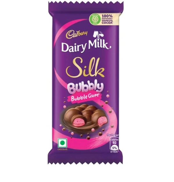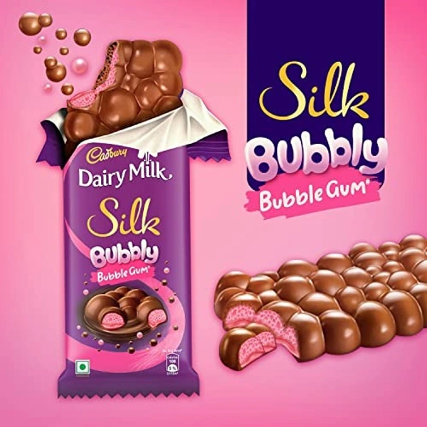 - Cadbury Silk Bubbly Bubblegum not only has the regular smooth and creamy milk chocolate, but also has unique bubblegum flavor, making it even tastier.