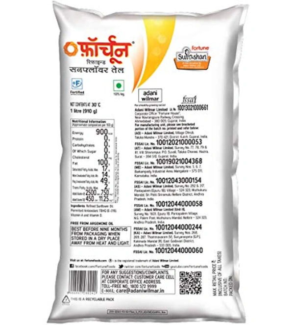 Fortune Sunlite Refined Sunflower Oil, 1L