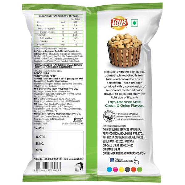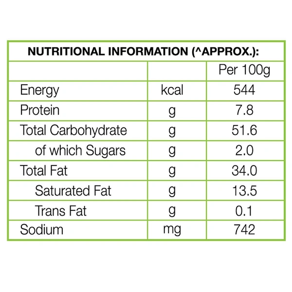 - 100% vegetarian, best quality potatoes, finest quality of spices and edible vegetable oils. Trans-fat free.