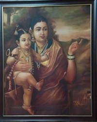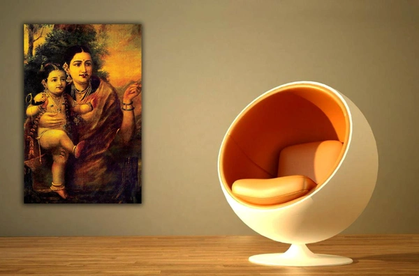 Maa Yashoda with Krishna recopy of Raja Ravi Varma on canvas oil panting