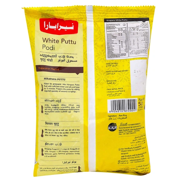NIRAPARA puttu is steamed cylinders of ground rice layered with grated coconut. The rice powder used for Puttu is different from all other varieties of rice batter which is used for traditional South Indian breakfast because of its coarse nature and drier texture