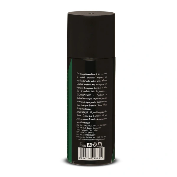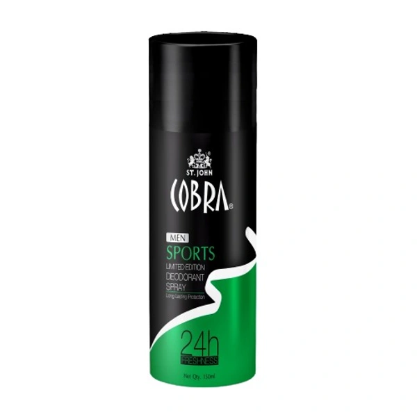 - Cobra Men Deodrant Sports Limited Edition Spray the perfect addition to complete your everyday grooming. Suitable to be used on any skin type. Spray on wrist, underarms, neck & behind ears for best results.