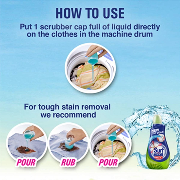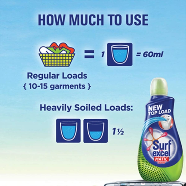 - New Surf excel matic liquid top load washing detergent gives you 100% stain removal in washing machines